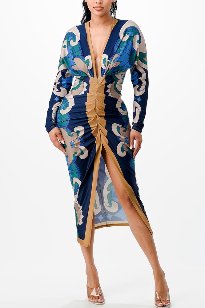 - great fit and stretch - front pleated draped detail - sexy front slit - Material: 89% Polyester, 11% spandex