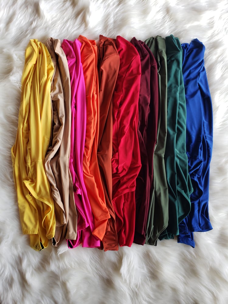 -great fit /stretch -v-neck line -Small fit 1-5, Medium fits 7-9, large 10-12 *Material: 92% Polyester & 8% Spandex