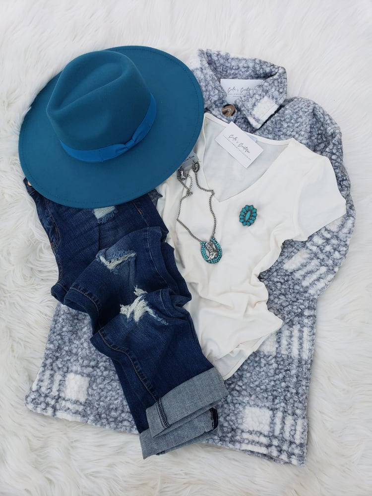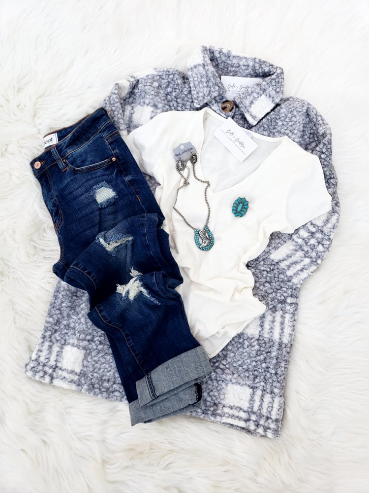 *wool shacket jacket *plaid pattern *button down closure *chest flap pockets *Material: 100% Polyester