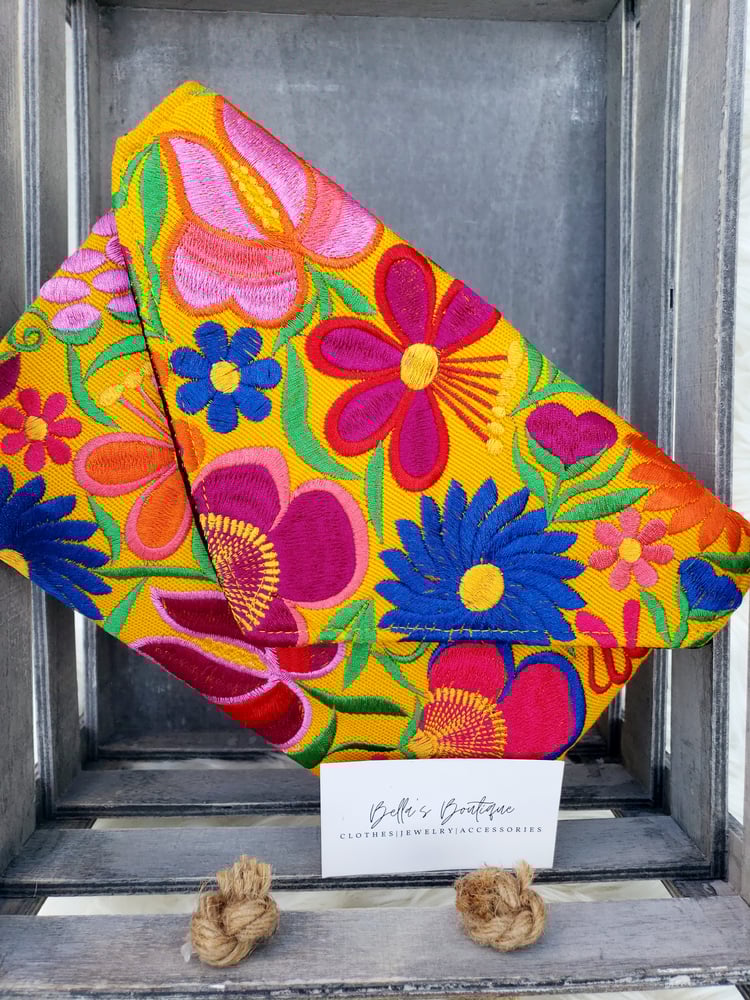 *Embroidered Clutch *Can be wore as a crossbody *Handmade by Mexican Artisans *Made in MX, Quintana Roo ** Final Sale **