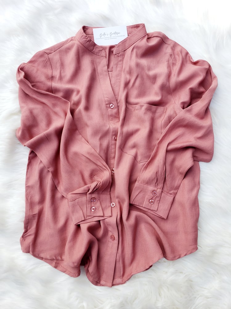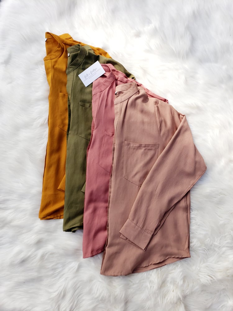 *V-neckline *front button-up closure *single front pocket *long sleeves with buttoned cuffs *waist-length *Material: 53% Rayon, 47% Polyester