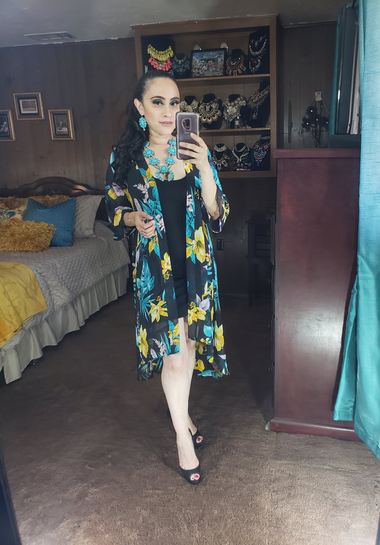 *A sheer mesh woven Kimono *Tropical print all over *3/4 Sleeves *Longline Length *Material: 100% Polyester